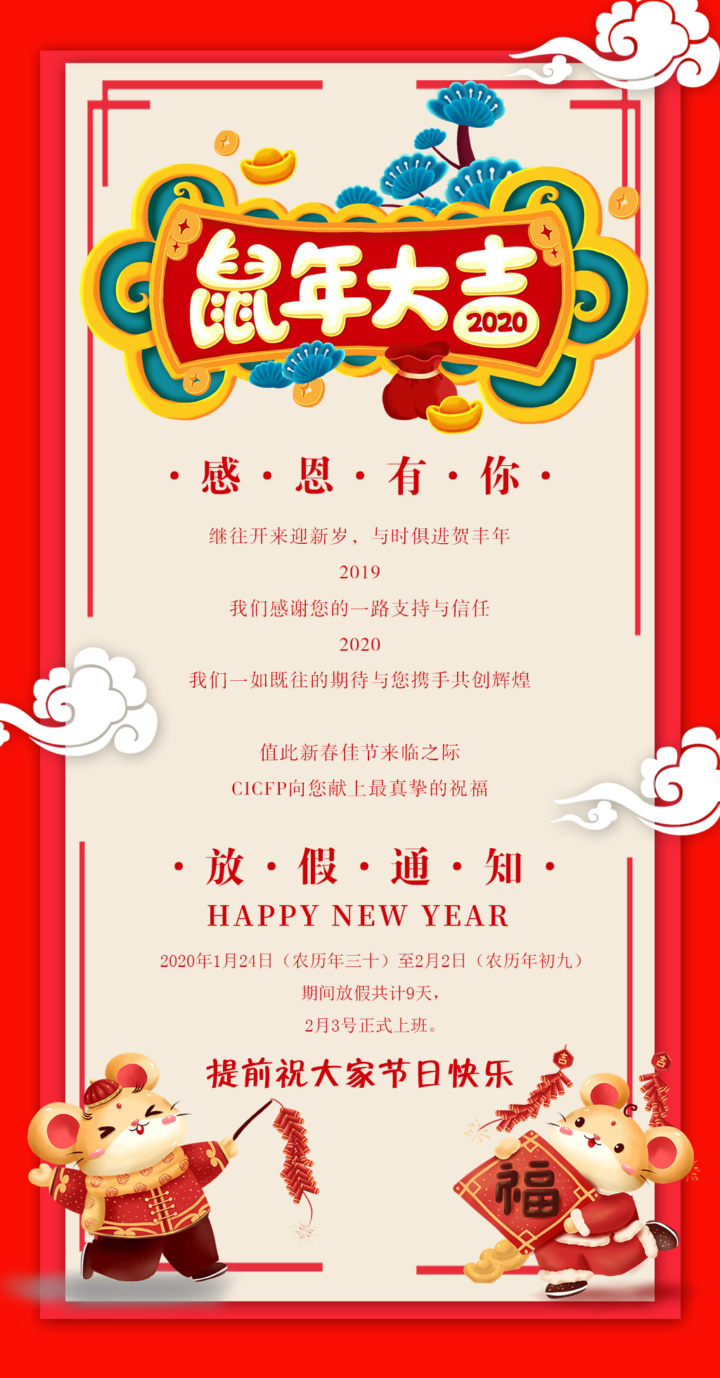 2020春节放假公告