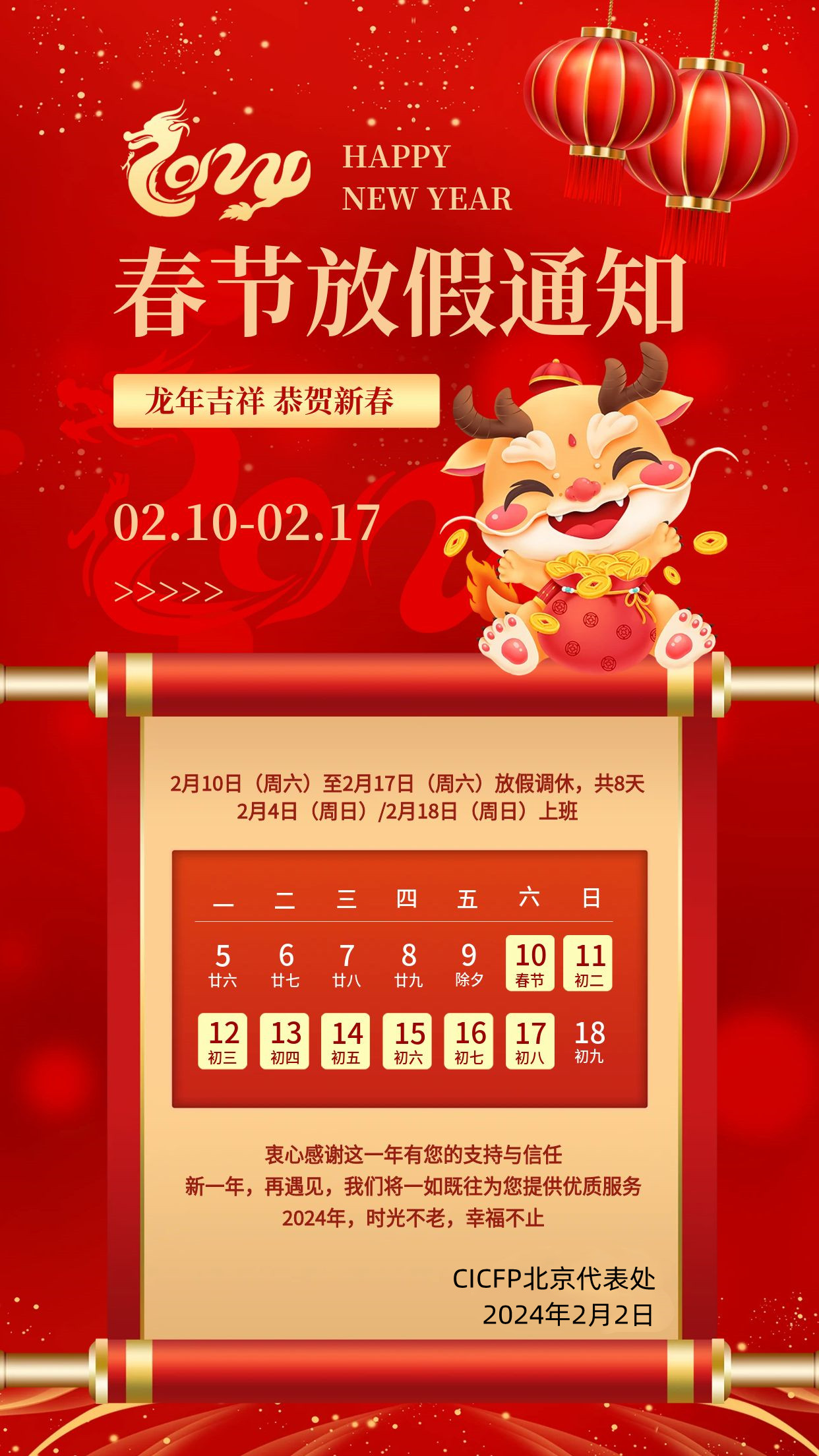 理财协会北京代表处恭祝大家新春快乐 龙年大吉!