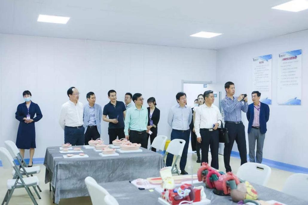 山东圣翰财贸职业学院学院党委书记姚东方、国际交流学院院长曲蕾、健康学院院长刘峰等学院领导陪同考察团参观了学院办学场地和设施,曲蕾院长对校园的整体发展规划及设施做了详细的介绍,重点参观了健康学院的实训空间,现场就实训空间的建设和课程设置进行了简短交流。